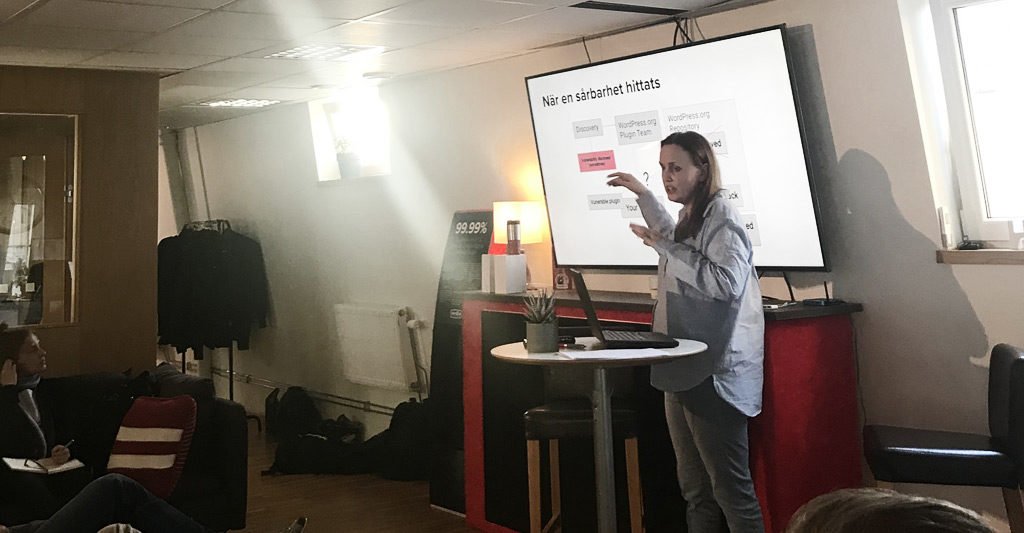 Sist var det dags för Åsa Rosenberg att berätta lite om hur det kan komma sig att det finns sårbarheter i tillägg som hämtas från WordPress.orgs repo (kodbibliotek) samt vad olika involverade parter kan göra för att minska risken att WordPress-hemsidor blir hackade. WordPress.org måste hitta ett sätt att hantera sårbarheter på som minskar risken att hackare snabbt kan lista ut att sårbarheter finns. Webbplatsägare bör hålla koll på sina tillägg, ta bort alla som inte behövs och uppdatera så fort som möjligt. Men webbhotellen kan också ta en mer aktiv roll i att övervaka situationen och informera kunder när deras sajter har sårbara tillägg.